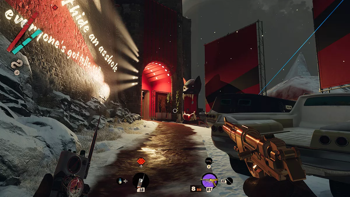 The game gives players quite the arsenal of weapons. There are also trinkets, that can be collected around the island and from the remains of Eternalist, used to enhance both Colt and his weapons. These are things like double-jumps and faster reloads.