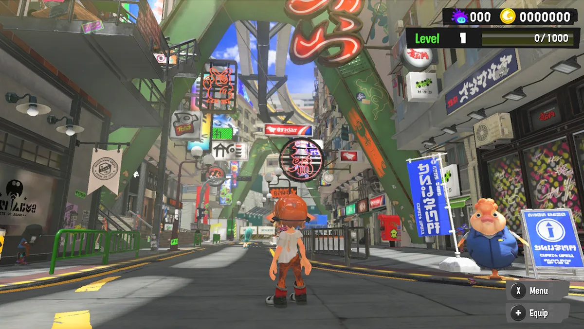 The multiplayer component of the game explains the social hub, Splatsville, which players are dumped into at the start. In this area, there are shops selling equipment and customisations, the vendors of which are very quick to remind you to buy an online subscription if you haven't already.