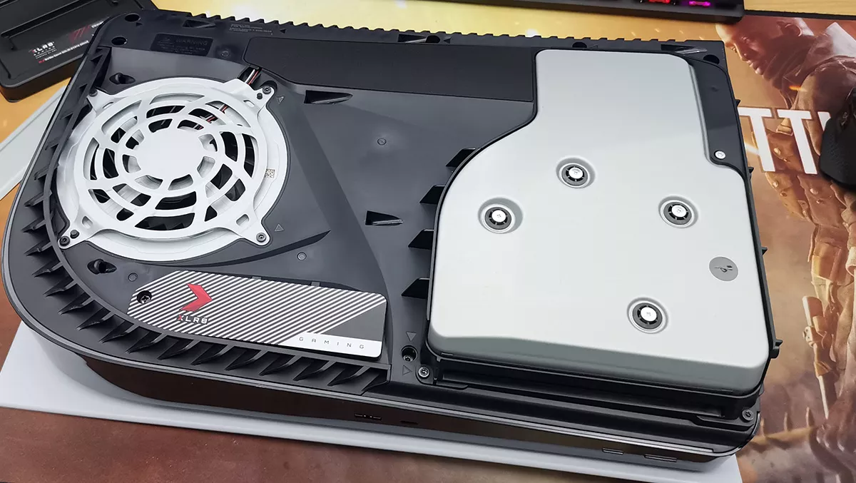 PNY's XLR8 Gaming PS5 SSD Cover with integrated heatsink works with any M.2 drive suitable for a PS5 that's not already got a heatsink. Instead of dissipating heat in an enclosed space, the heatsink replaces the stock PS5 SSD cover, having holes that allow air to be blown by the fan to flow across and through the exposed surface. I would say that the heatsink looks good as well, but it does get covered by the side panels.