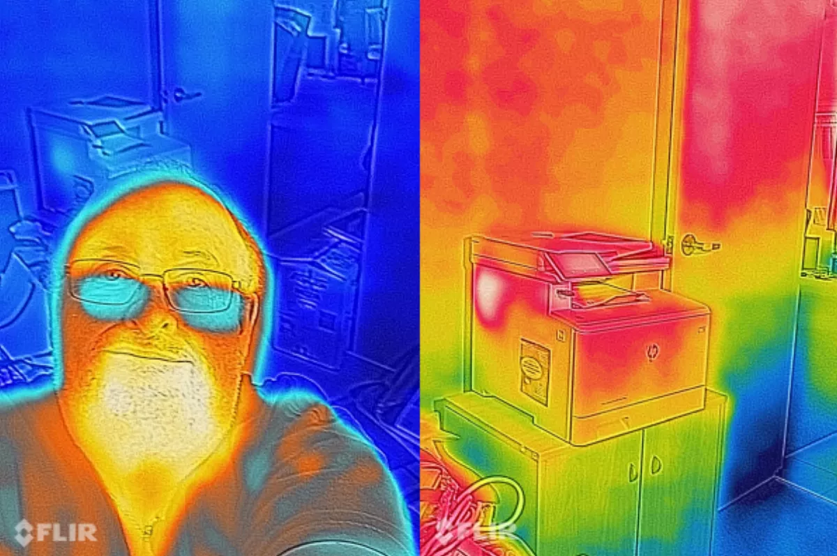 I also noticed the camera had a symbol representing water, so I'm keen to try out those capabilities, after of course checking with the suppliers! The thermal imaging app is called FLIR, and I obtained some interesting results with it. The CAT website tells me that it's also good if you need to "locate a heat source up to 400°C, even in complete darkness, and diagnose damp, draught, a leak, a short or blockages".