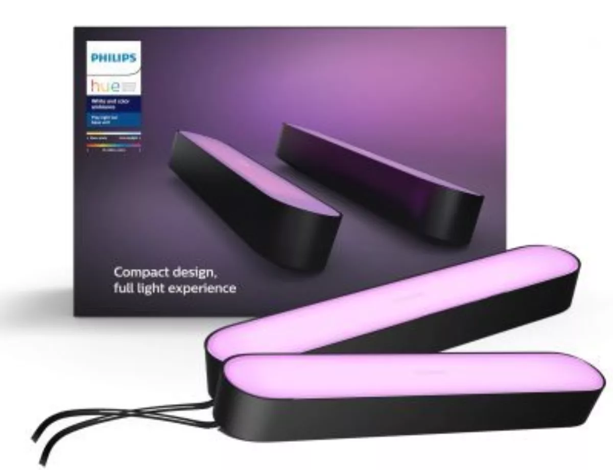 The Philips Hue Play is available as either a single or double pack, the latter featuring two LED light bars. An additional extension pack adds another light bar and connection cable to further expand your lighting system.